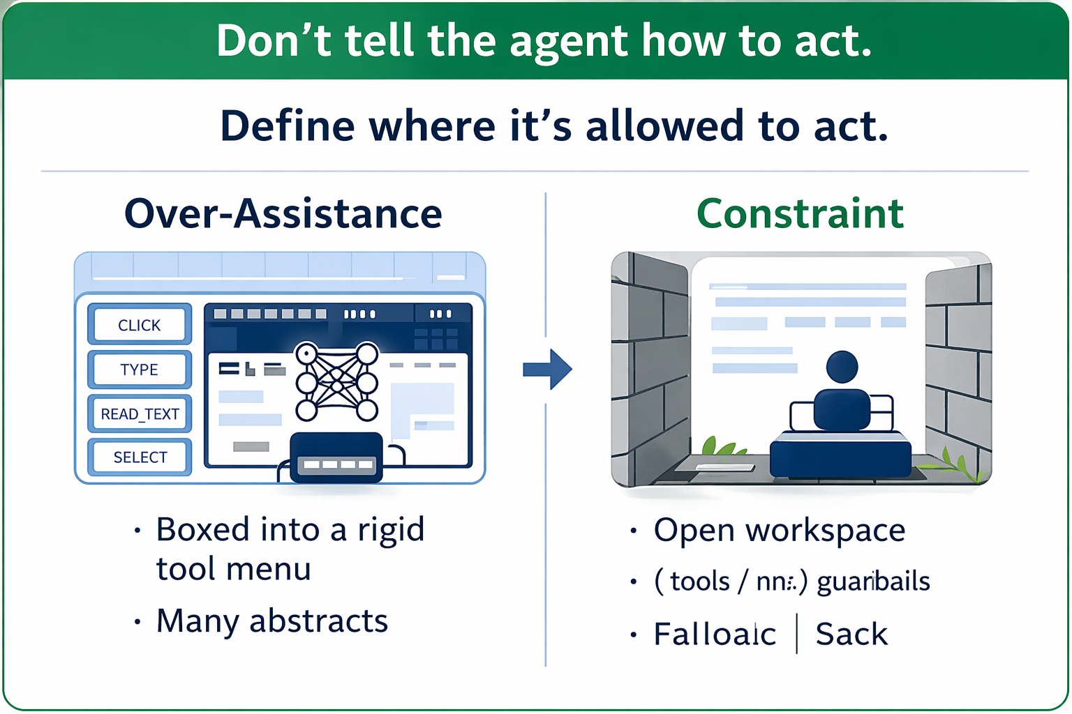 The clearest lesson from this work is that reliability does not come from giving the model more helper functions. It often comes from giving it fewer, more powerful primitives and constraining those primitives in the right ways. Over-assistance hardcodes assumptions about how a task should be done. Constraints define safe operating boundaries and allow the model to discover better local solutions.