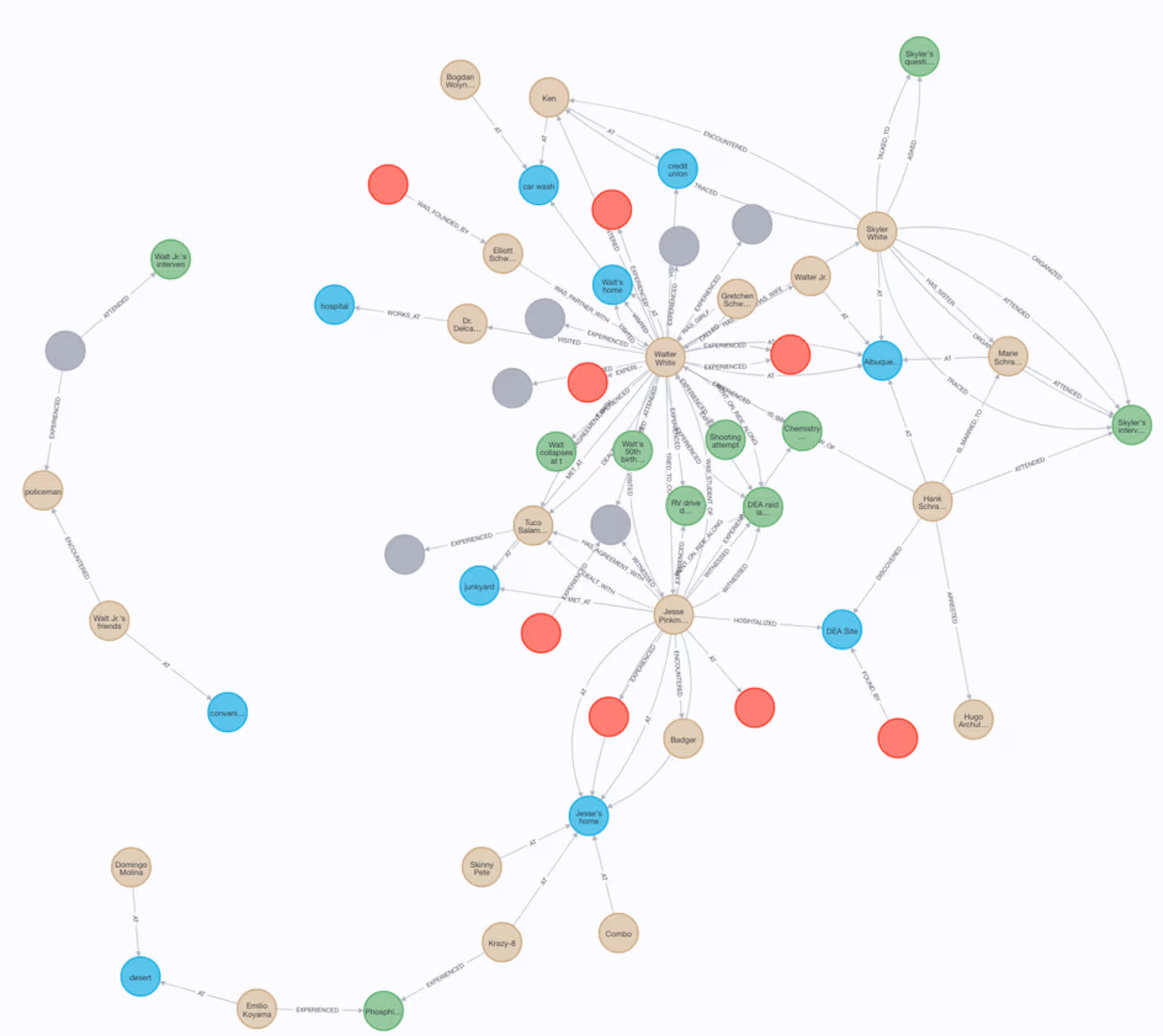 Notice that some of these questions involve being able to connect relationships between Persons that may not have even occurred in the same episode (Walter White’s relationships). In the unstructured text, they will appear is completely different text.