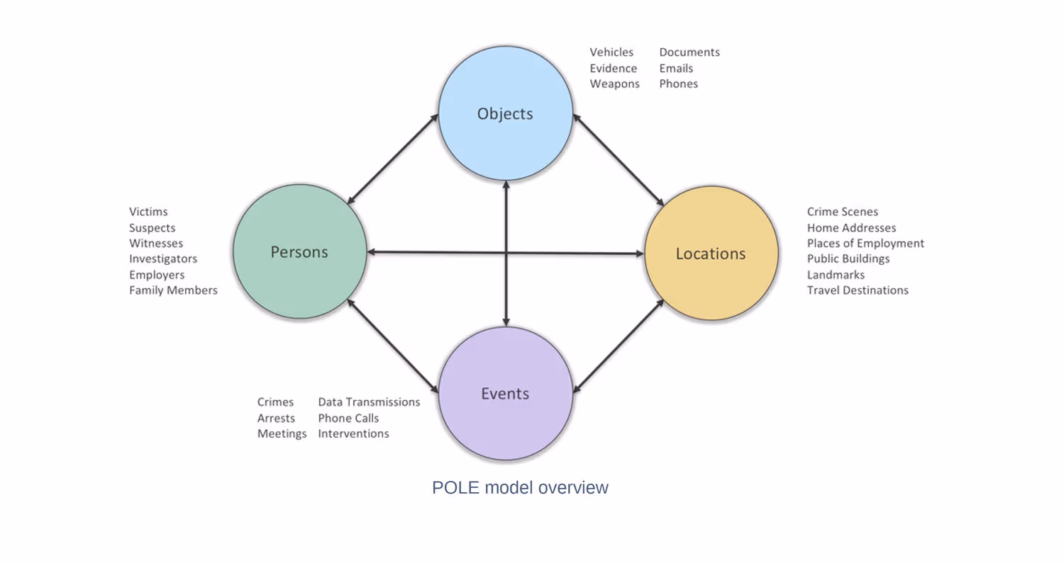 In this example, we use an agent pre-trained on using POLE modelling technique (commonly used in crime prevention and law enforcement) to model the data. It uses People, Objects, Locations and Events as named entities and documents relationships between them.